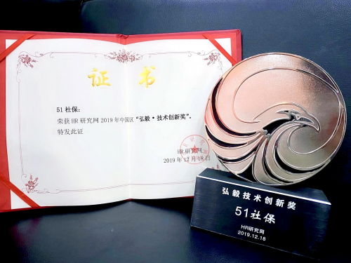 此次评选历时6个月,近百家参选案例先后经历初选、复选、终选、公示四道关卡,由来自国内外头部企业的CHO、知名学者及业内资深专家组成的首席评审团,针对个人及企业的参选项目进行调研与评分。最终评出:“弘毅奖”、“弘毅CHO奖”、“弘毅产品创新奖”、“弘毅技术创新奖”、“弘毅新锐奖”、“弘毅服务奖”六大奖项。其中,“弘毅技术创新奖”表彰了2019年度将新技术、新应用引入人力资源领域并形成产品化,在市场经过验证取得一定的社会效应的优秀人力资源服务机构。51社保凭借技术的不断升级,服务的不断创新,荣获此项殊荣。
